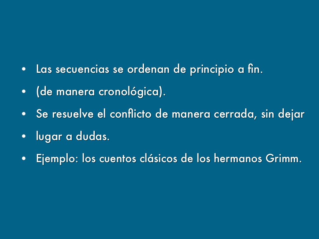 con la secuencia lineal. Deja abierto el final, el conflicto.