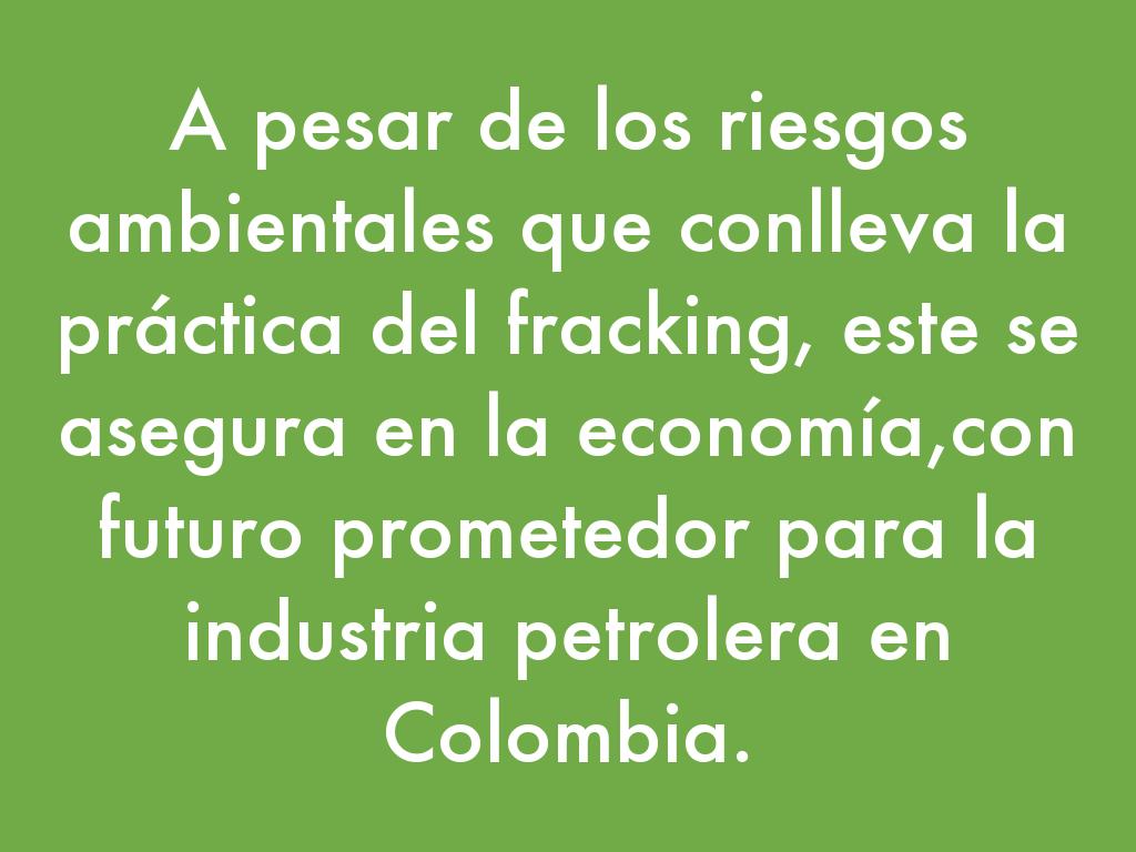 A pesar de los riesgos ambientales que conlleva la práctica del fracking, este se asegura en la economía,con futuro prometedor para la industria petrolera en Colombia.