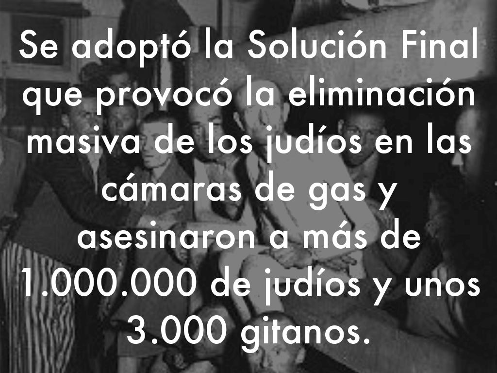 Se adoptó la Solución Final que provocó la eliminación masiva de los judíos en las cámaras de gas y asesinaron a más de 1.000.000 de judíos y unos 3.000 gitanos.