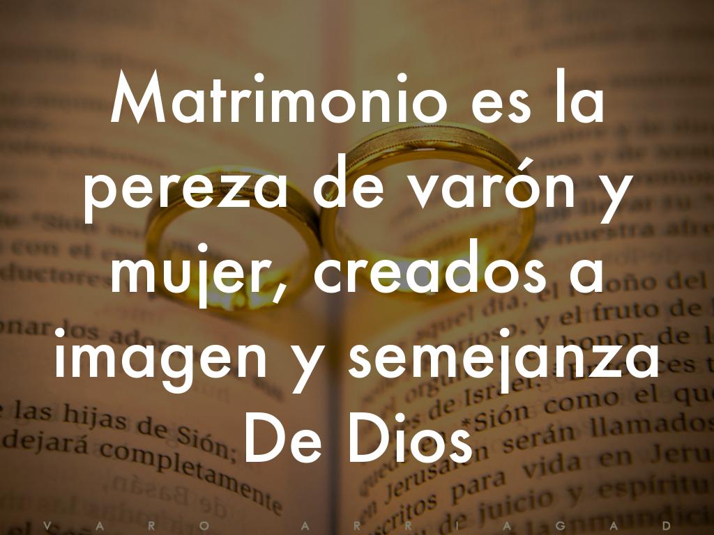Matrimonio es la pereza de varón y mujer, creados a imagen y semejanza De Dios