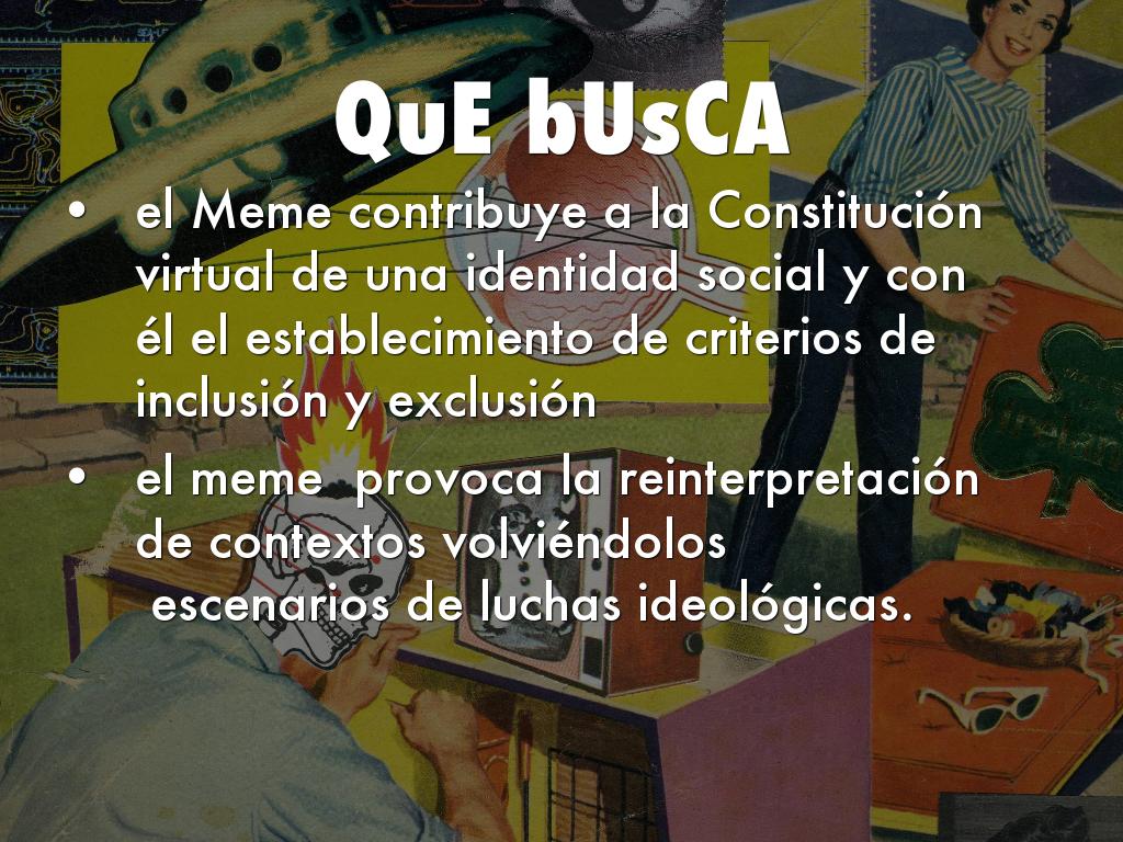 • el meme provoca la reinterpretación de contextos volviéndolos escenarios de luchas ideológicas.