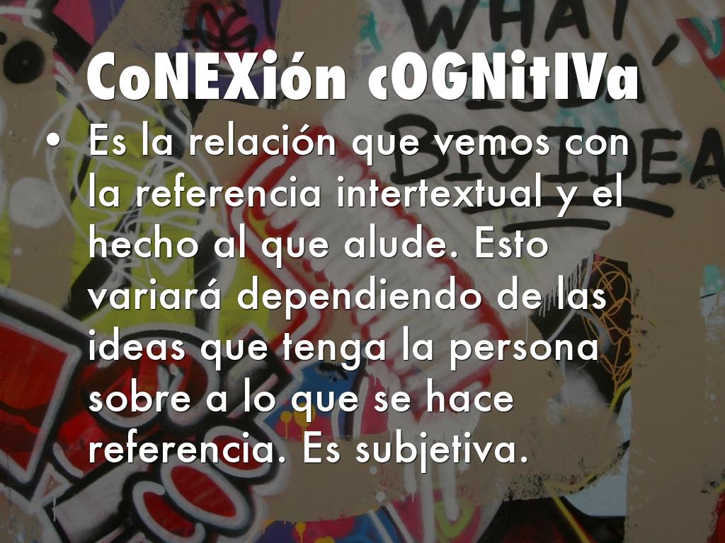 • Es la relación que vemos con la referencia intertextual y el hecho al que alude. Esto variará dependiendo de las ideas que tenga la persona sobre a lo que se hace referencia. Es subjetiva.