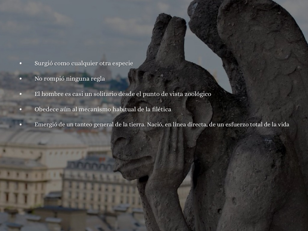 Emergió de un tanteo general de la tierra. Nació, en línea directa, de un esfuerzo total de la vida