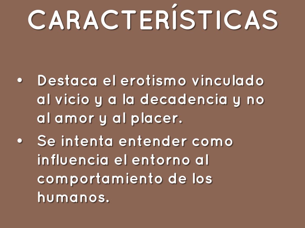 • Destaca el erotismo vinculado al vicio y a la decadencia y no al amor y al placer.