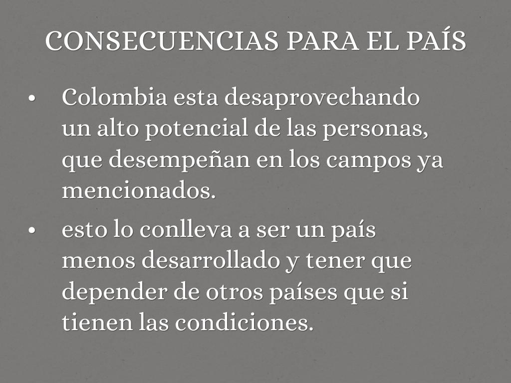 - Colombia esta desaprovechando un alto potencial de las personas, que desempeñan en los campos ya mencionados.