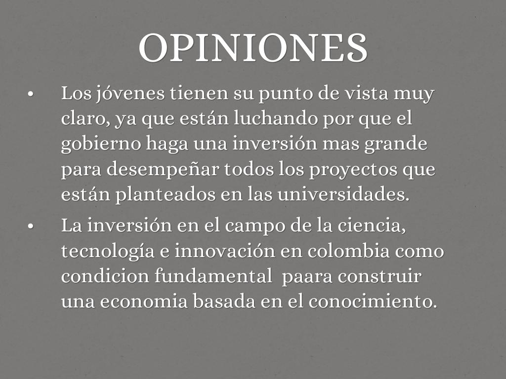 - Los jóvenes tienen su punto de vista muy claro, ya que están luchando por que el gobierno haga una inversión mas grande para desempeñar todos los proyectos que están planteados en las universidades.