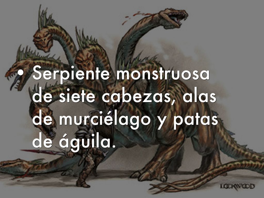 - Serpiente monstruosa de siete cabezas, alas de murciélago y patas de águila.