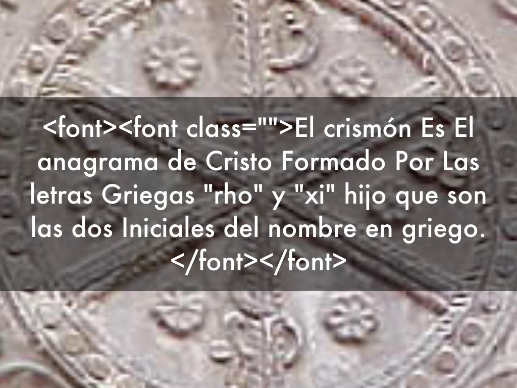 El crismón Es El anagrama de Cristo Formado Por Las letras Griegas "rho" y "xi" hijo que son las dos Iniciales del nombre en griego.