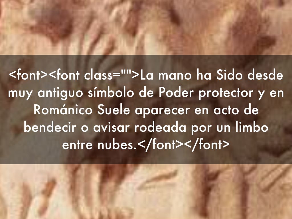 La mano ha Sido desde muy antiguo símbolo de Poder protector y en Románico Suele aparecer en acto de bendecir o avisar rodeada por un limbo entre nubes.