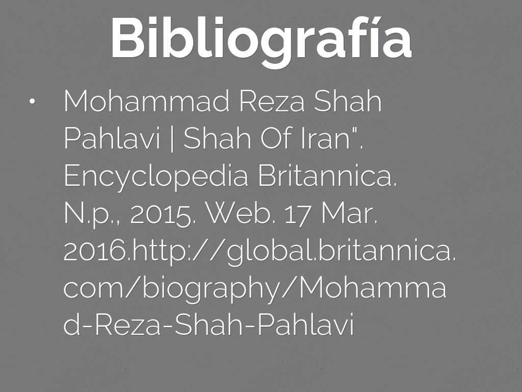 Mohammad Reza Shah Pahlavi | Shah Of Iran". Encyclopedia Britannica. N.p., 2015. Web. 17 Mar. 2016.
