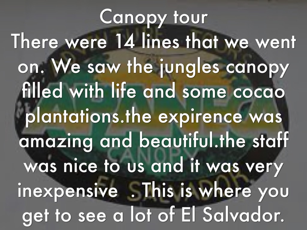 There were 14 lines that we went on. We saw the jungles canopy filled with life and some cocao plantations.the expirence was amazing and beautiful.the staff was nice to us and it was very inexpensive . This is where you get to see a lot of El Salvador.