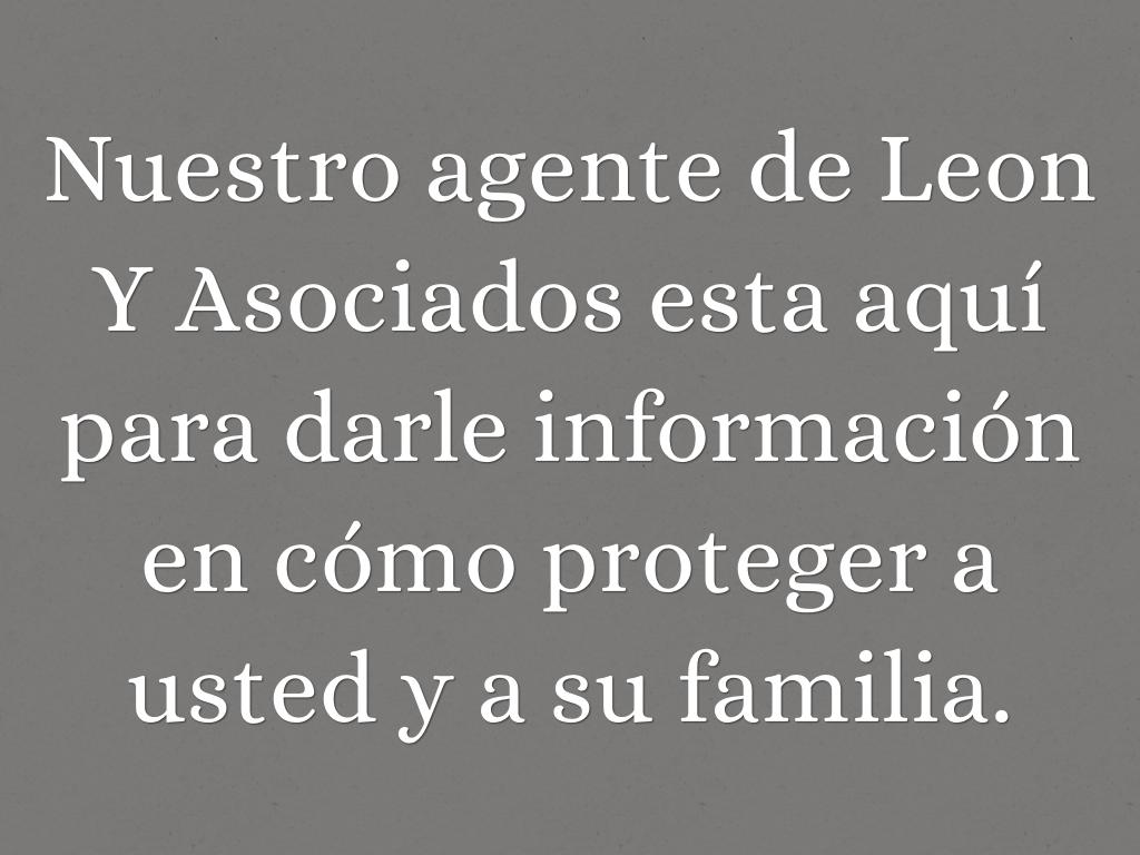 Nuestro agente de Leon Y Asociados esta aquí para darle información en cómo proteger a usted y a su familia.