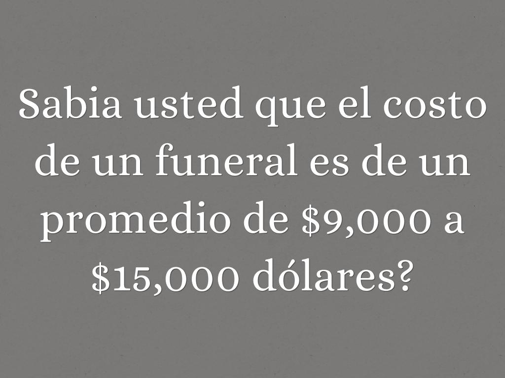 Sabia usted que el costo de un funeral es de un promedio de $9,000 a $15,000 dólares?