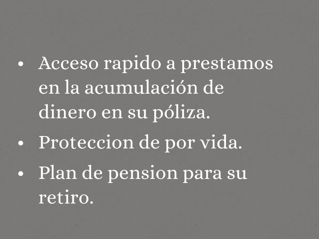 - Acceso rapido a prestamos en la acumulación de dinero en su póliza.