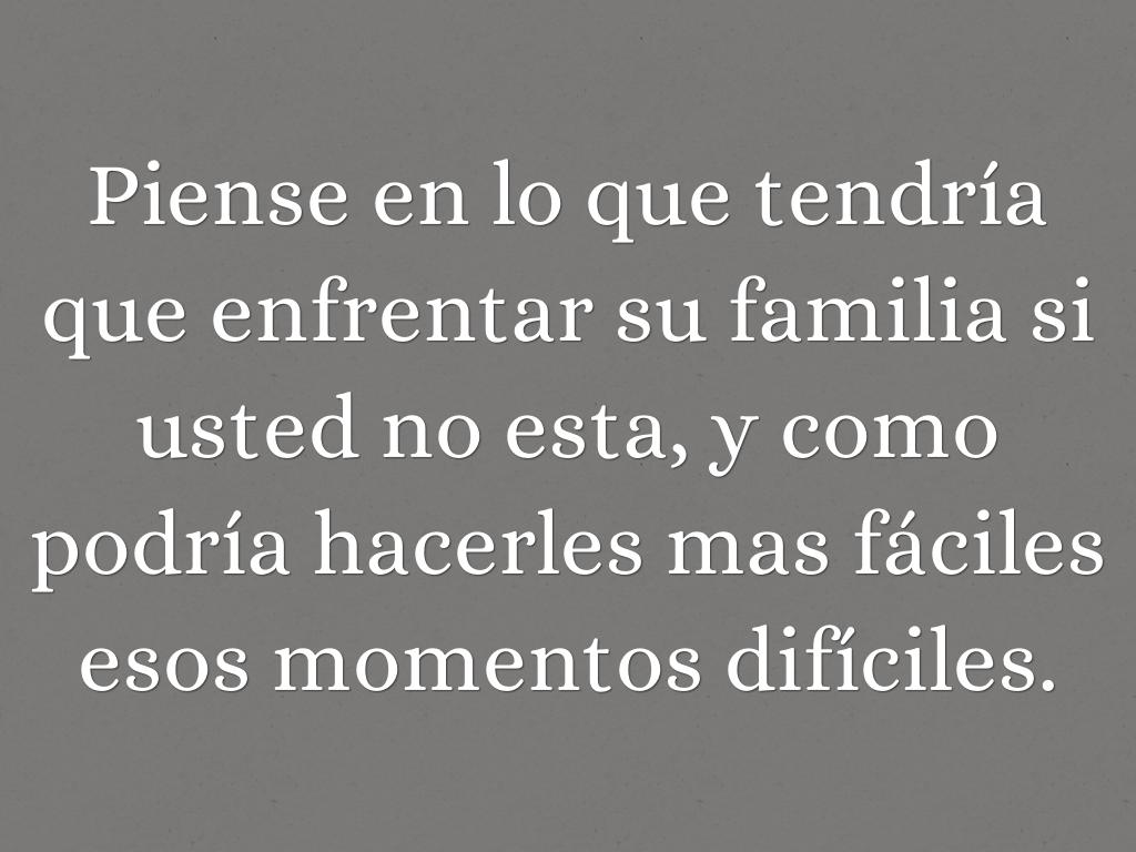 Piense en lo que tendría que enfrentar su familia si usted no esta, y como podría hacerles mas fáciles esos momentos difíciles.