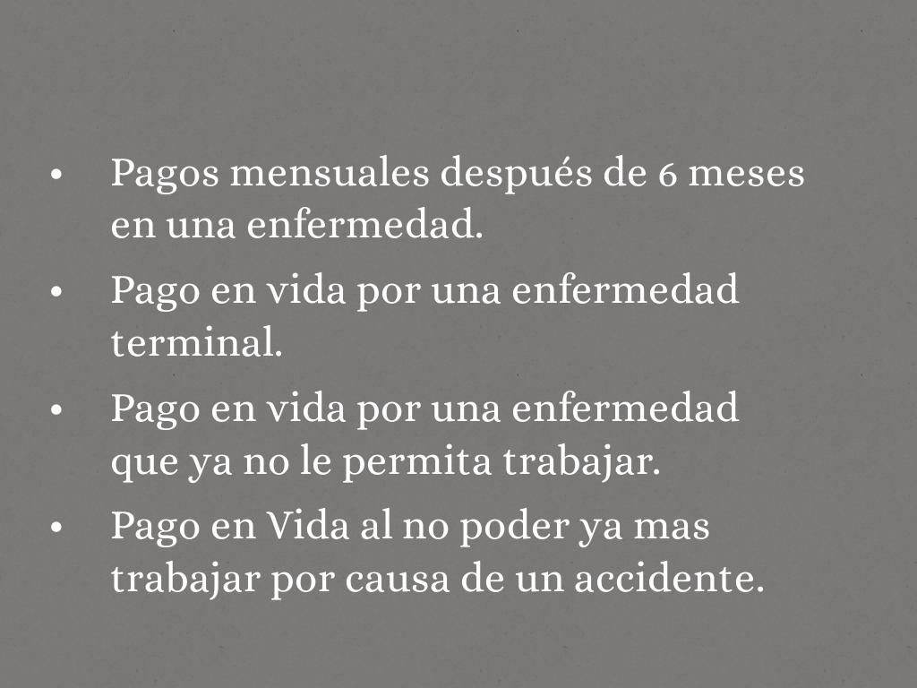 - Pagos mensuales después de 6 meses en una enfermedad.