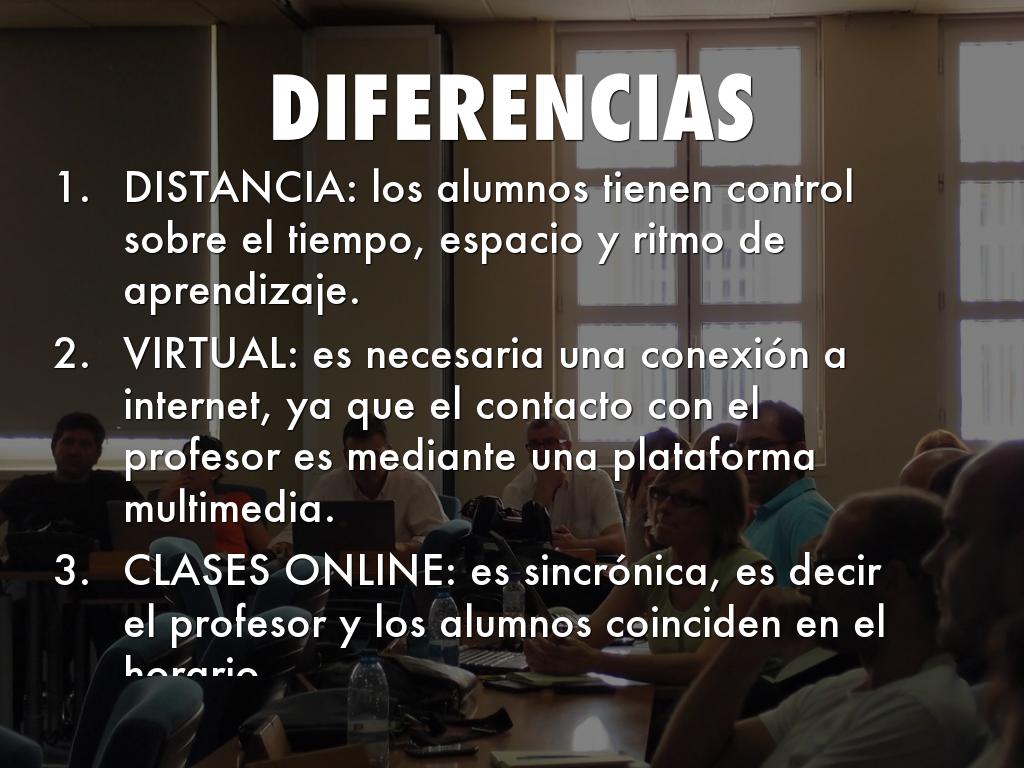 • DISTANCIA: los alumnos tienen control sobre el tiempo, espacio y ritmo de aprendizaje.