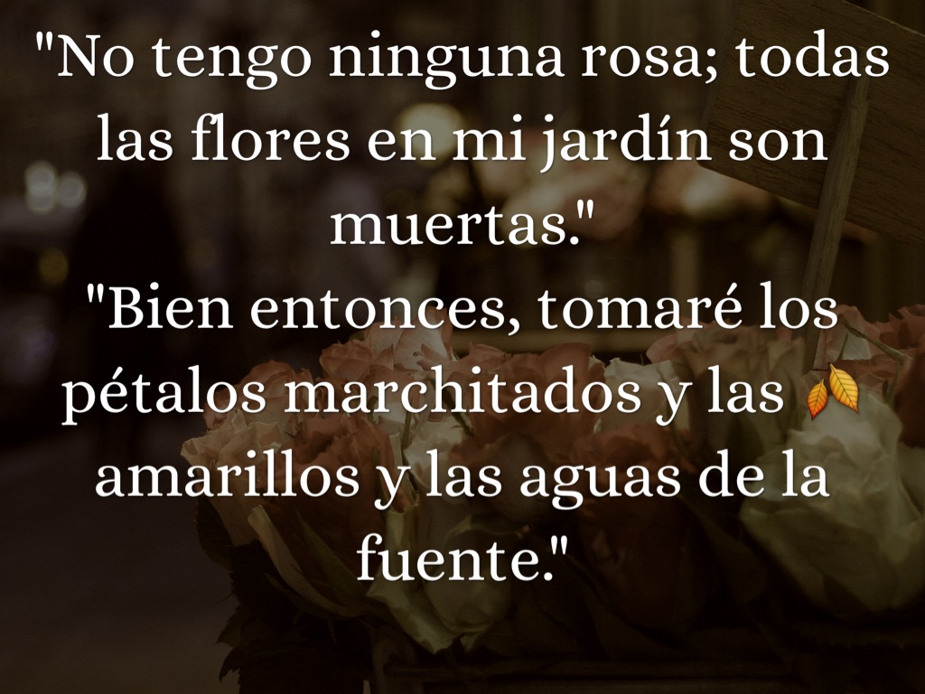 "Bien entonces, tomaré los pétalos marchitados y las 🍂 amarillos y las aguas de la fuente."