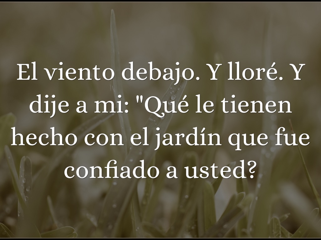 El viento debajo. Y lloré. Y dije a mi: "Qué le tienen hecho con el jardín que fue confiado a usted?