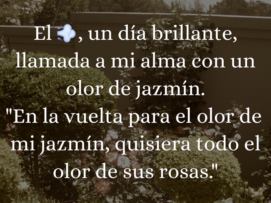 El 💨, un día brillante, llamada a mi alma con un olor de jazmín.