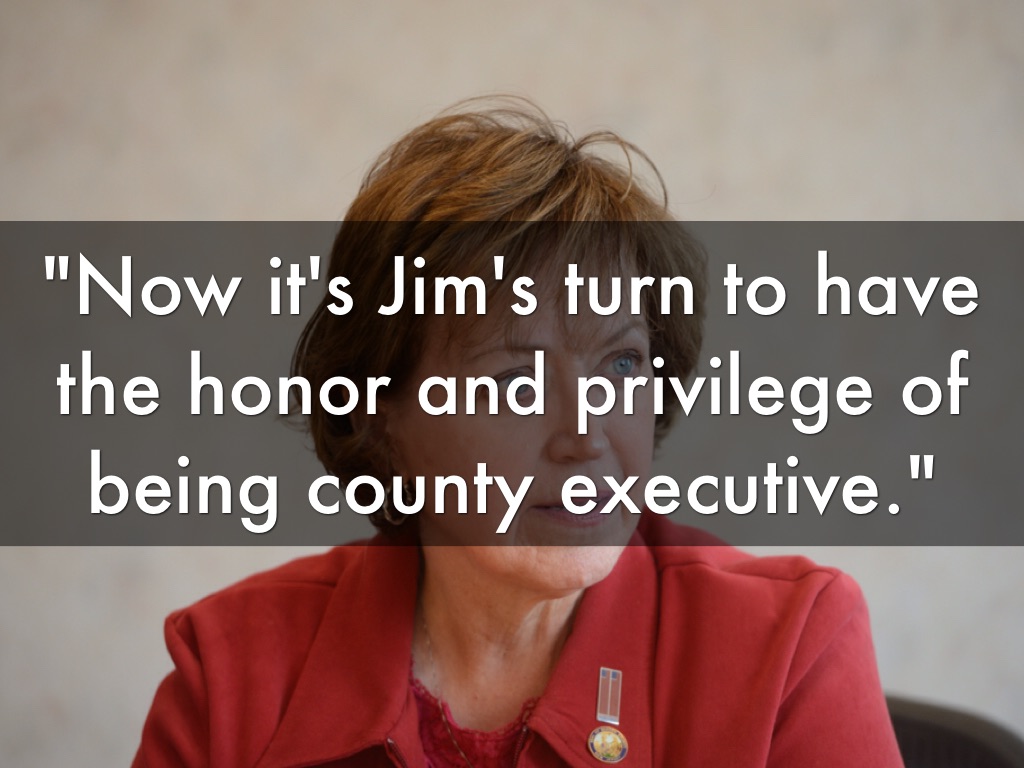 "Now it's Jim's turn to have the honor and privilege of being county executive."