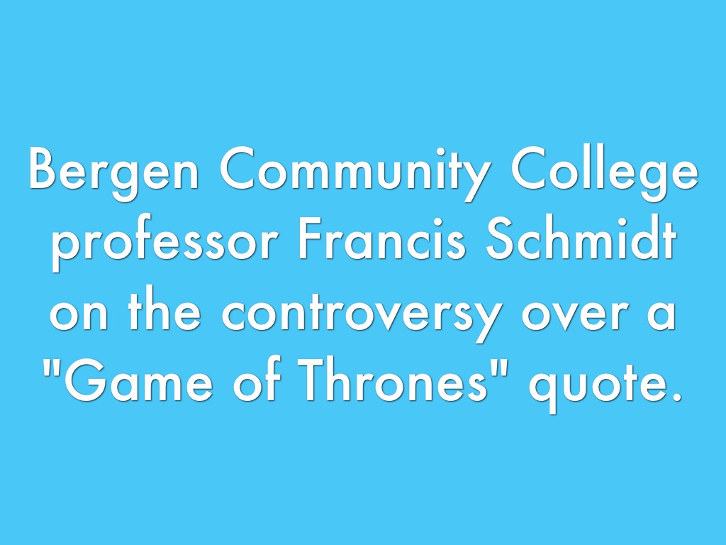 Bergen Community College professor Francis Schmidt on the controversy over a "Game of Thrones" quote.