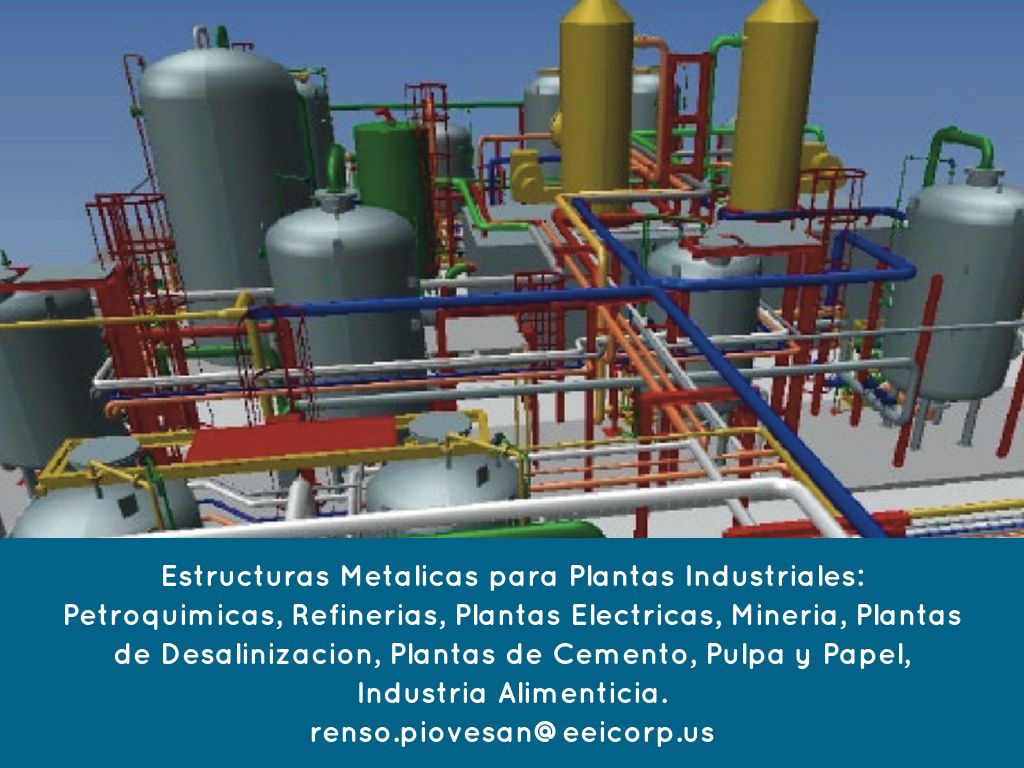 Estructuras Metalicas para Plantas Industriales: Petroquimicas, Refinerias, Plantas Electricas, Mineria, Plantas de Desalinizacion, Plantas de Cemento, Pulpa y Papel, Industria Alimenticia.