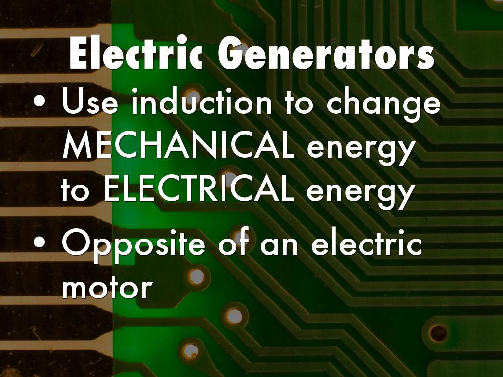 • Use induction to change MECHANICAL energy to ELECTRICAL energy