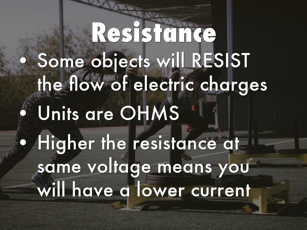 • Resistance - the OPPOSIYION to the flow of electric charge