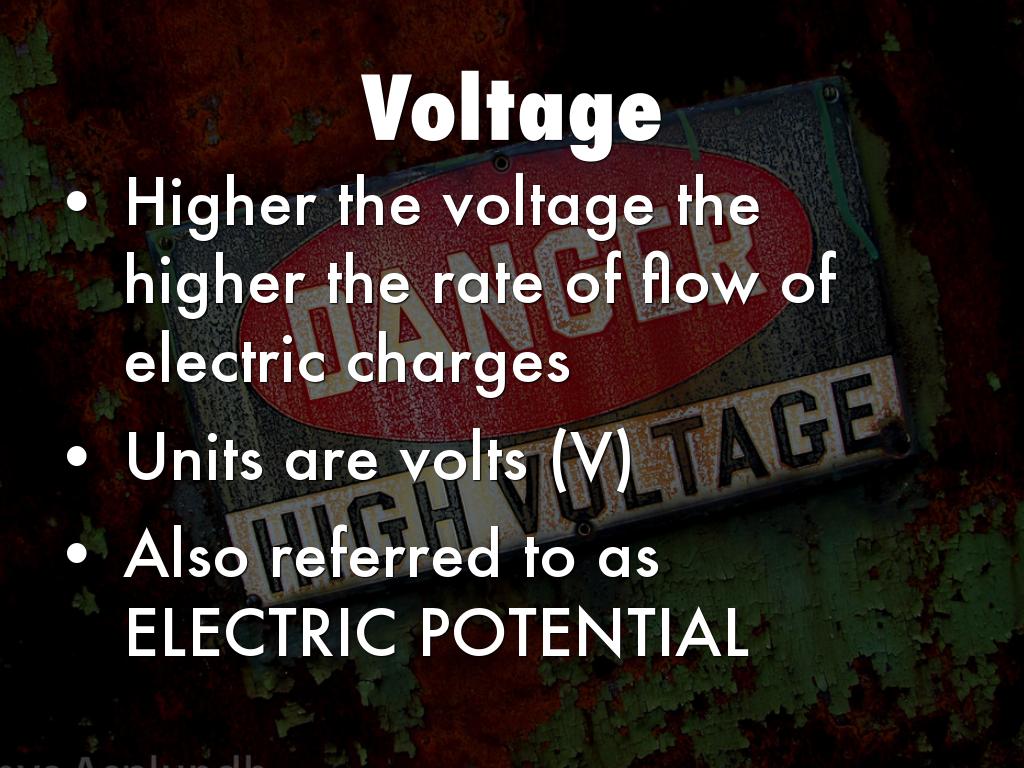 • Voltage - the amount of WORK required to move each unit of charge between two points