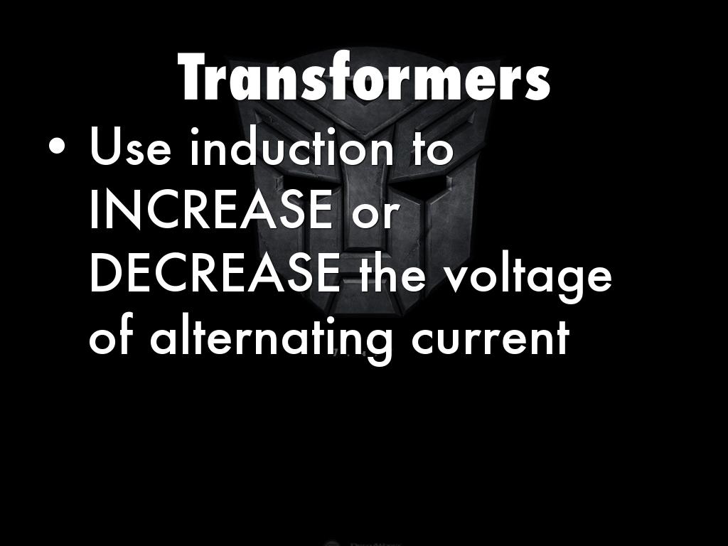 • Use induction to INCREASE or DECREASE the voltage of alternating current