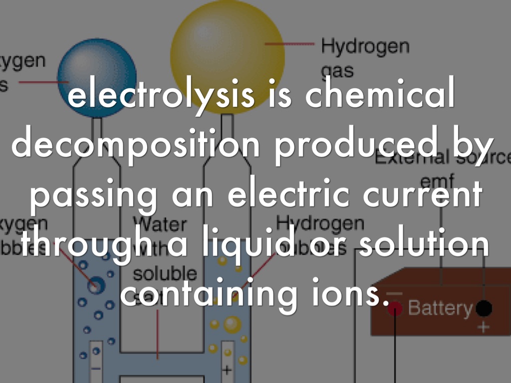 electrolysis is chemical decomposition produced by passing an electric current through a liquid or solution containing ions.
