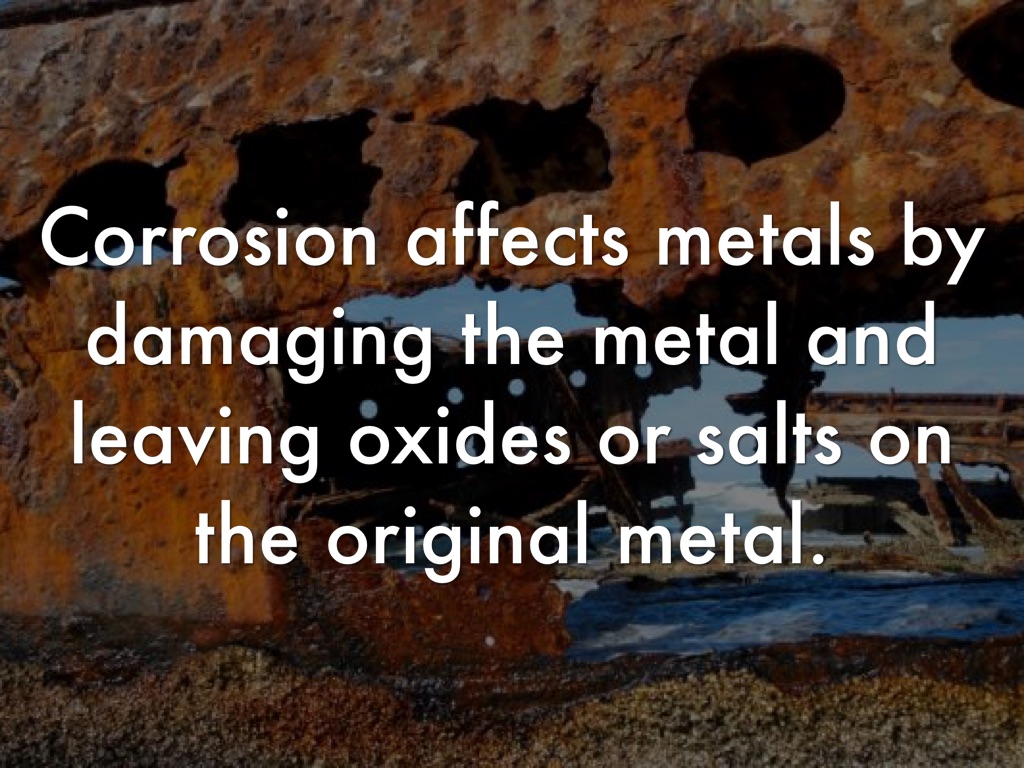 Corrosion affects metals by damaging the metal and leaving oxides or salts on the original metal.