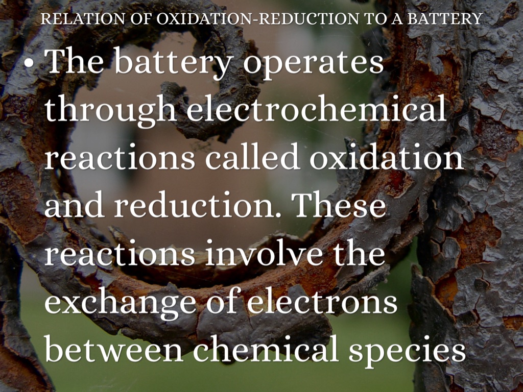 The battery operates through electrochemical reactions called oxidation and reduction. These reactions involve the exchange of electrons between chemical species