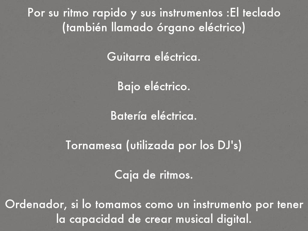 Por su ritmo rapido y sus instrumentos :El teclado (también llamado órgano eléctrico)
