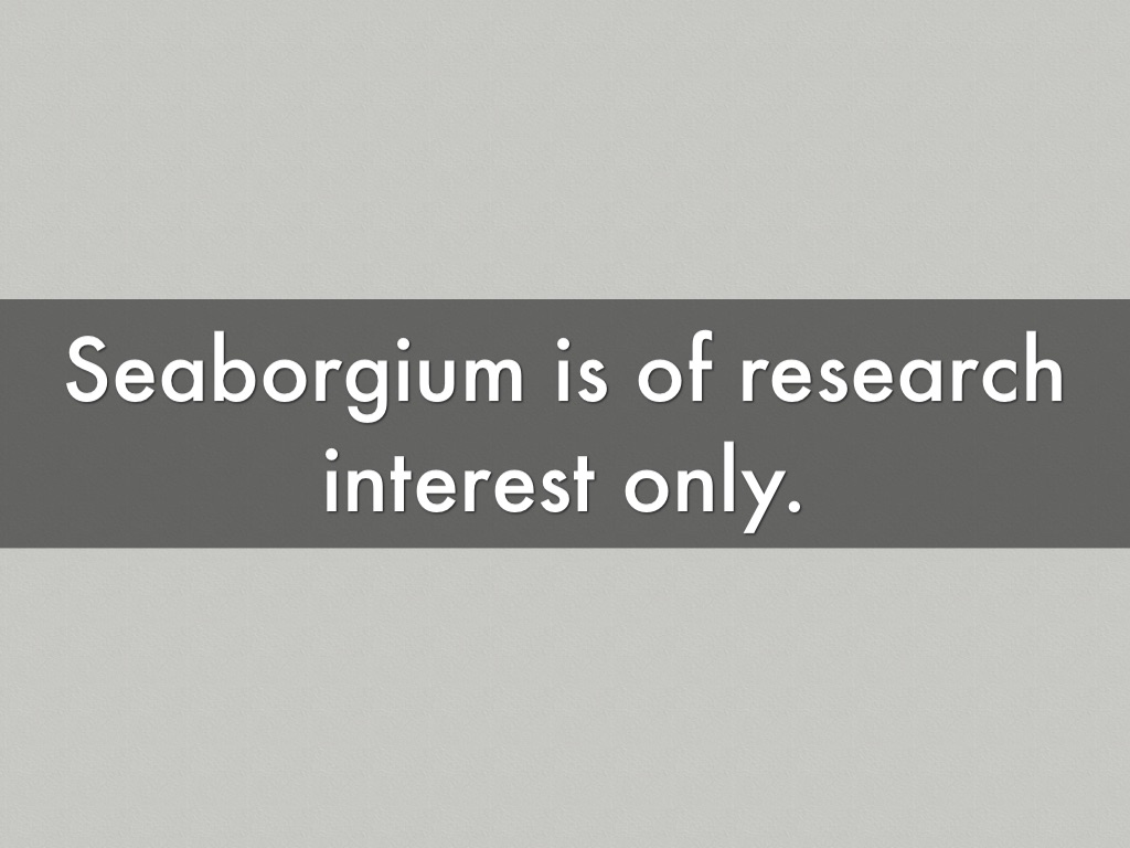 The element was named after Nobel prize winner Glenn Theodore Seaborg, the American nuclear chemist.