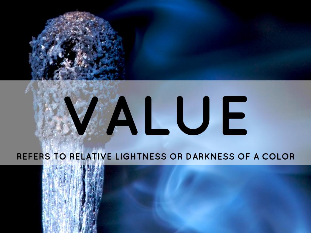 REFERS TO RELATIVE LIGHTNESS OR DARKNESS OF A COLOR