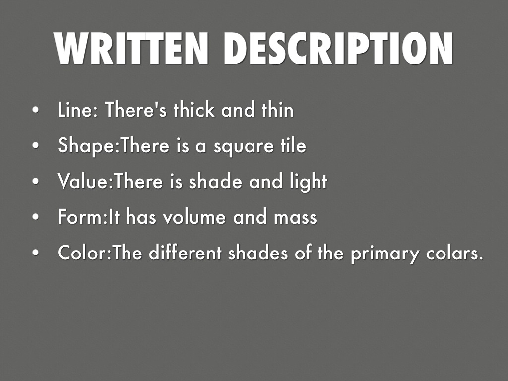 A ELEMENT OF ART THAT MEANS DARKNESS OR LIGHTNESS OF A SURFACE