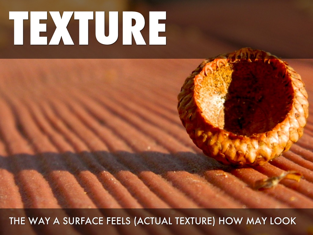 THE WAY A SURFACE FEELS (ACTUAL TEXTURE) HOW MAY LOOK
