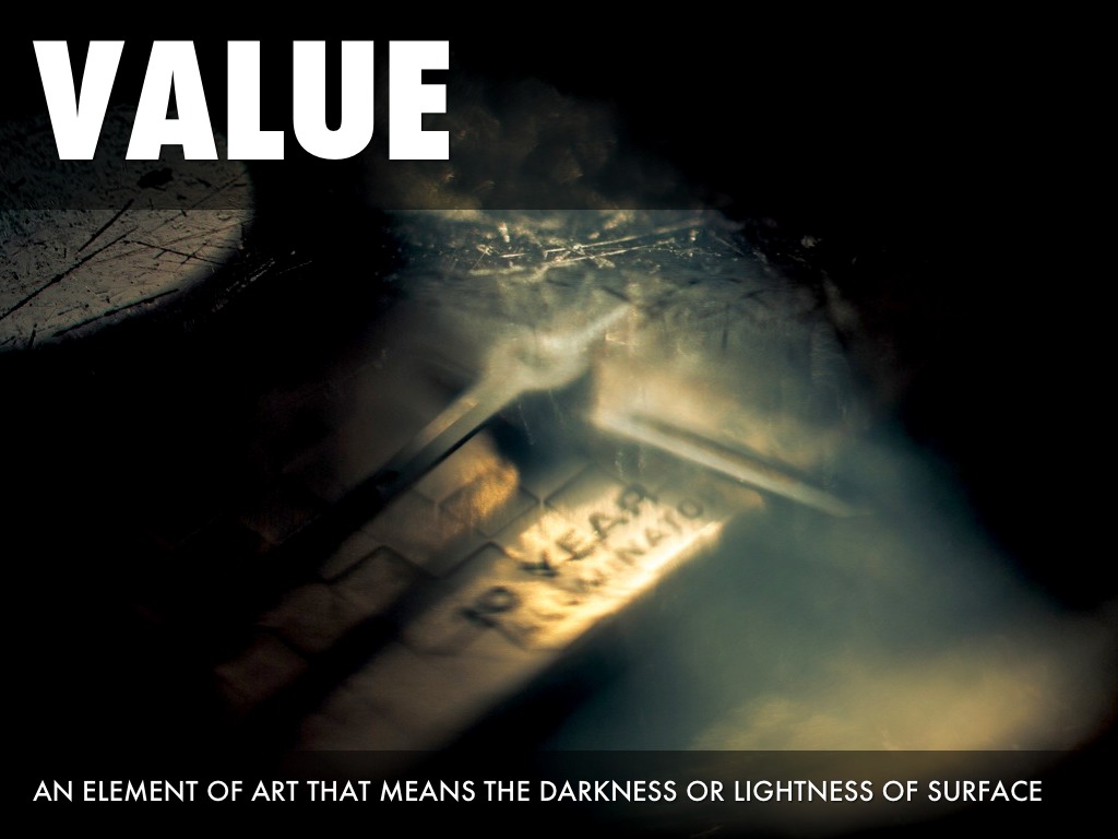 AN ELEMENT OF ART THAT MEANS THE DARKNESS OR LIGHTNESS OF SURFACE