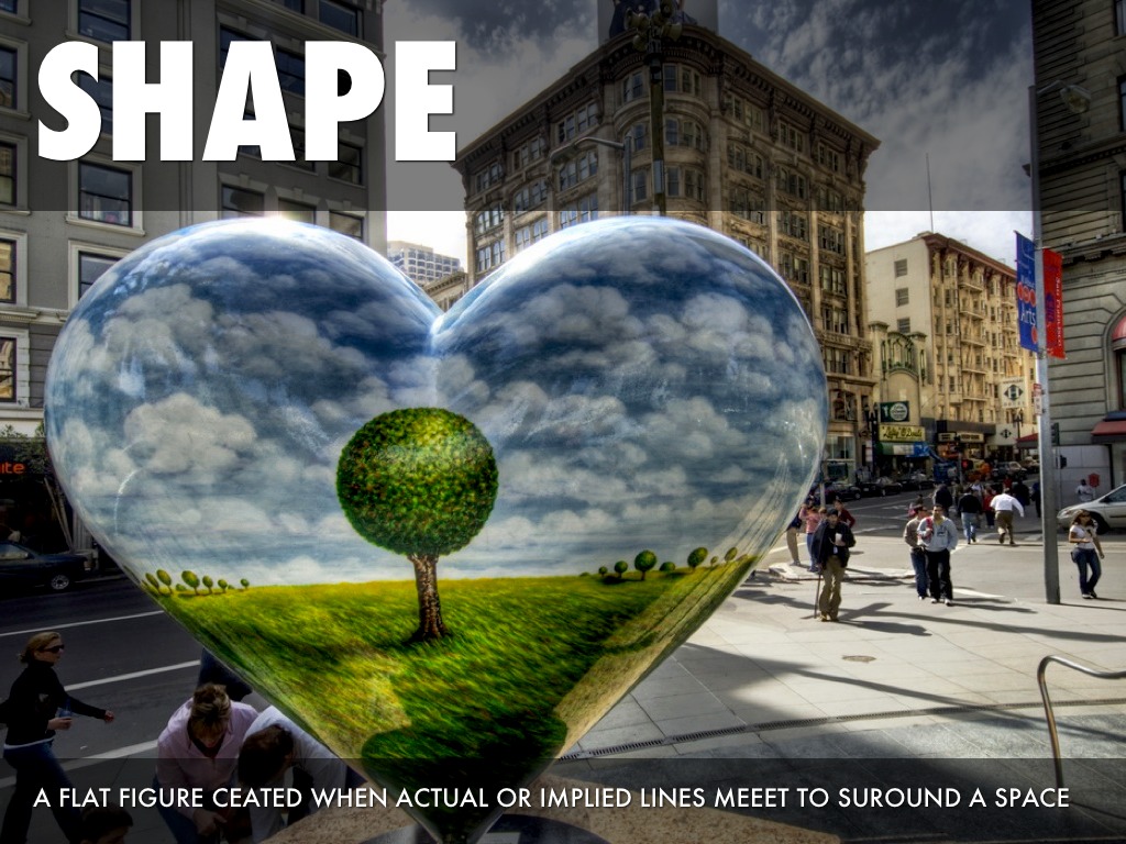 A FLAT FIGURE CEATED WHEN ACTUAL OR IMPLIED LINES MEEET TO SUROUND A SPACE