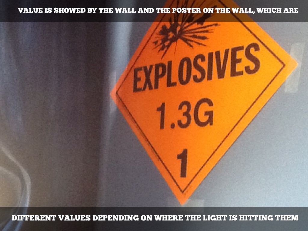 VALUE IS SHOWED BY THE WALL AND THE POSTER ON THE WALL, WHICH ARE