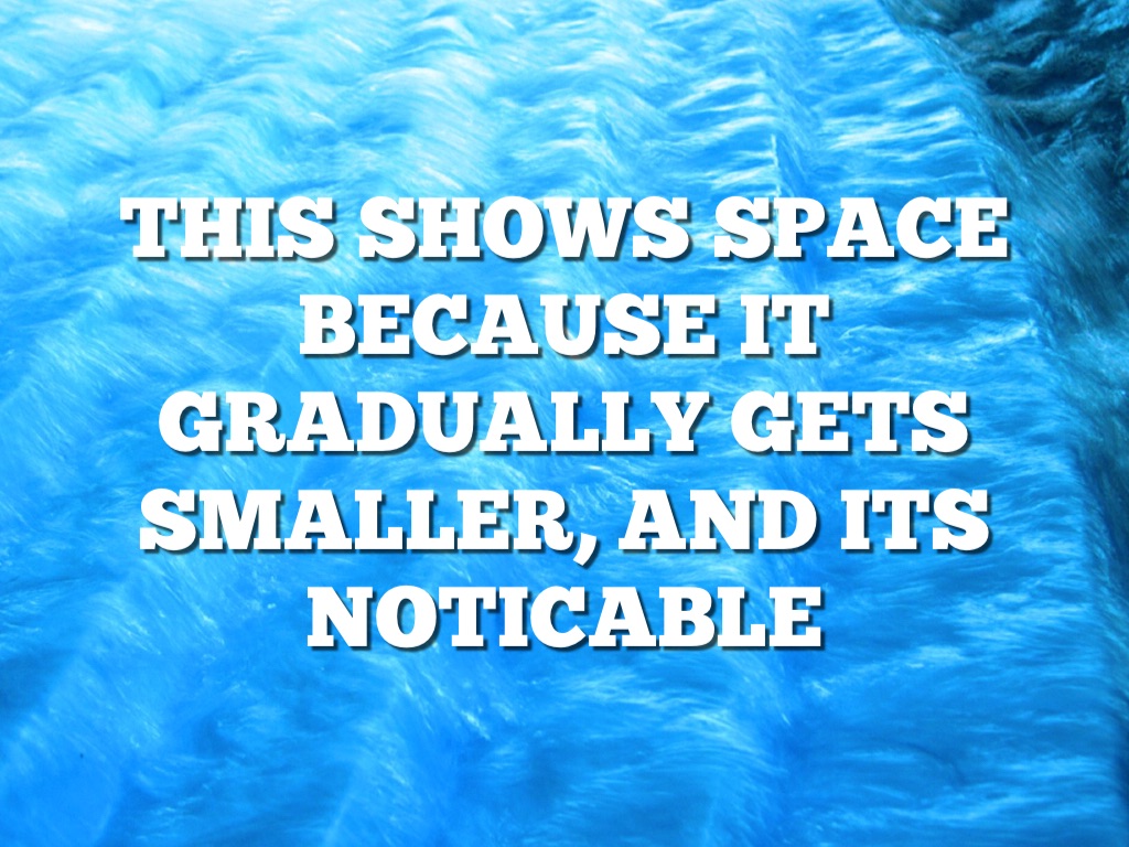 THIS SHOWS SPACE BECAUSE IT GRADUALLY GETS SMALLER, AND ITS NOTICABLE