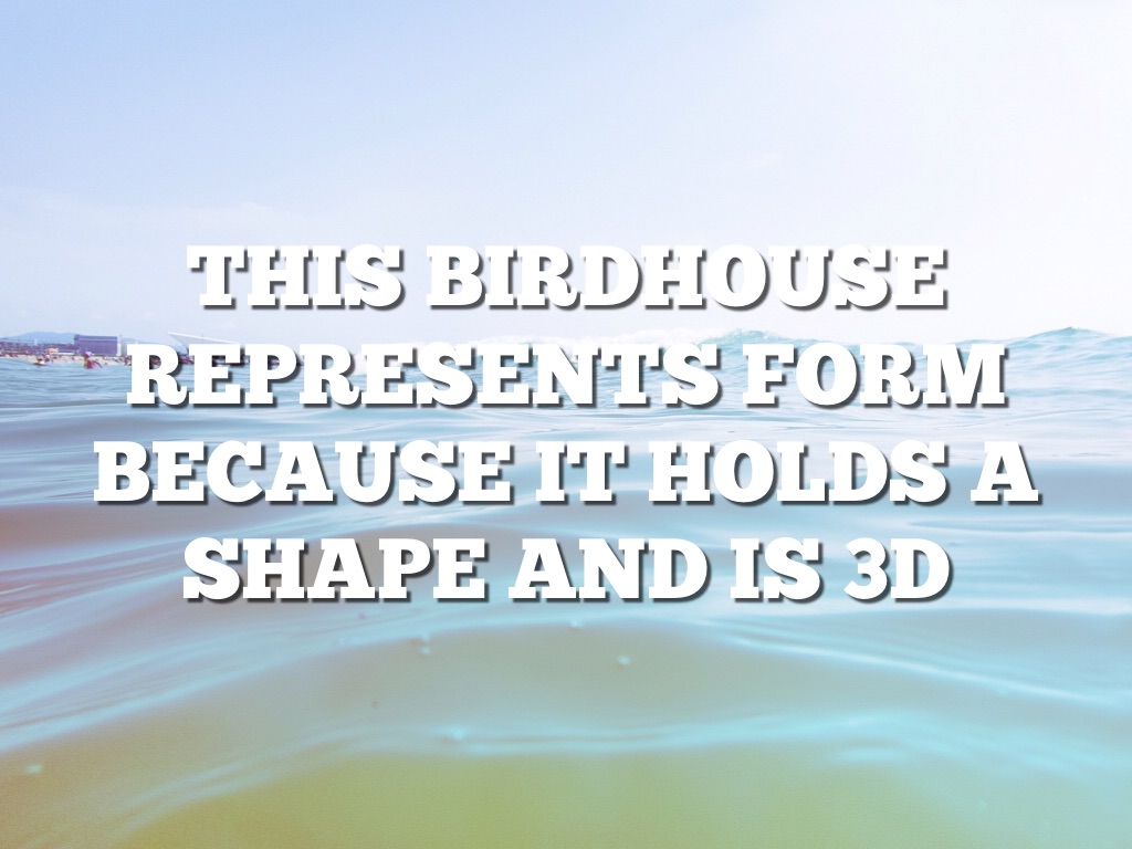 THIS BIRDHOUSE REPRESENTS FORM BECAUSE IT HOLDS A SHAPE AND IS 3D