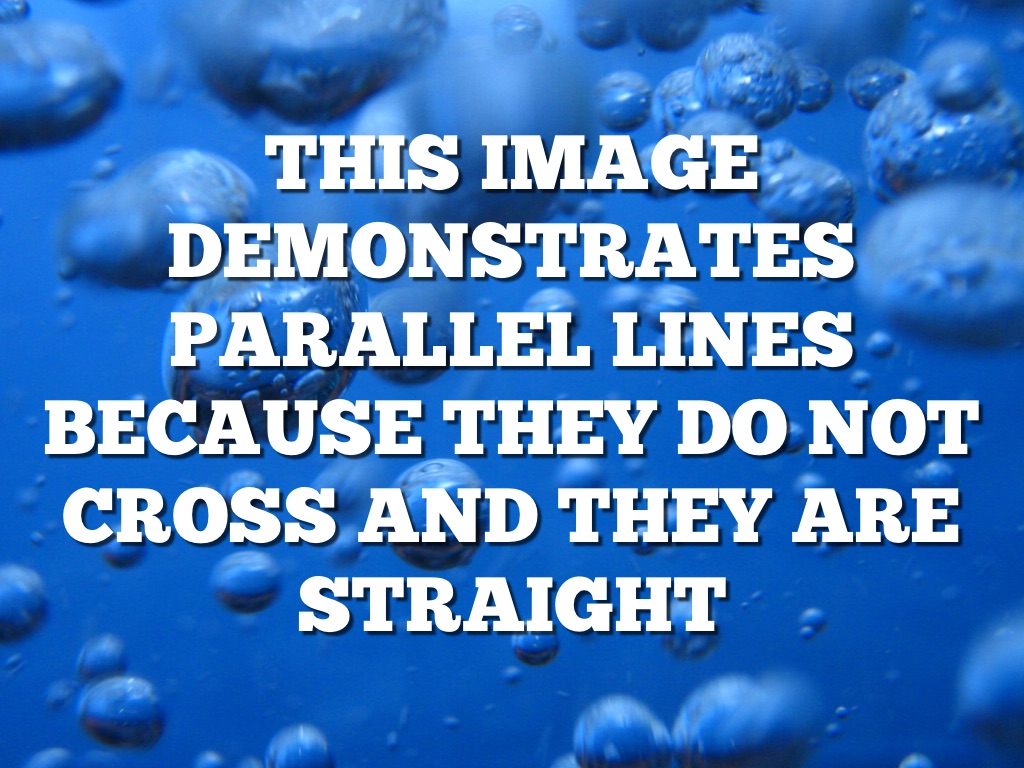THIS IMAGE DEMONSTRATES PARALLEL LINES BECAUSE THEY DO NOT CROSS AND THEY ARE STRAIGHT