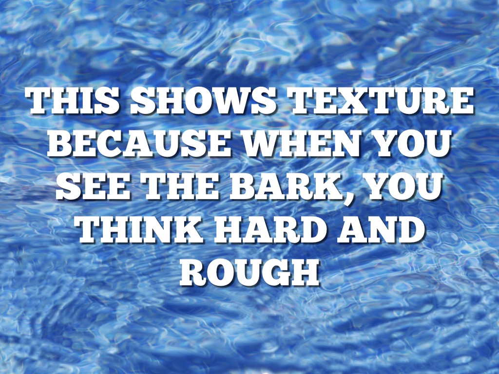 THIS SHOWS TEXTURE BECAUSE WHEN YOU SEE THE BARK, YOU THINK HARD AND ROUGH