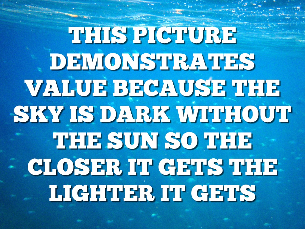 THIS PICTURE DEMONSTRATES VALUE BECAUSE THE SKY IS DARK WITHOUT THE SUN SO THE CLOSER IT GETS THE LIGHTER IT GETS