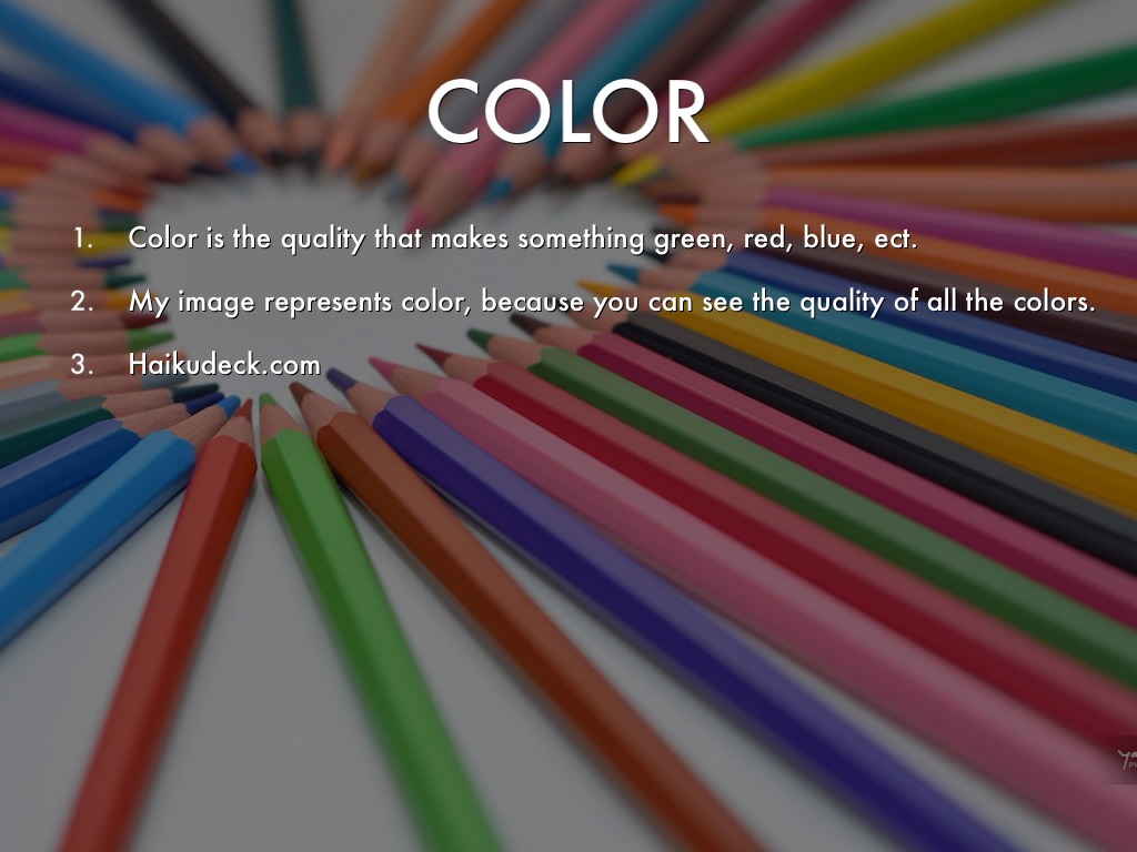 Color is the quality that makes something green, red, blue, ect.