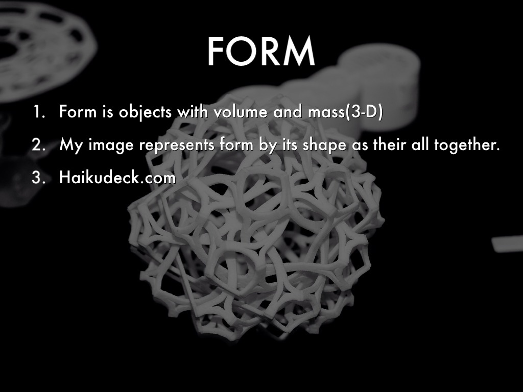 Form is objects with volume and mass(3-D)