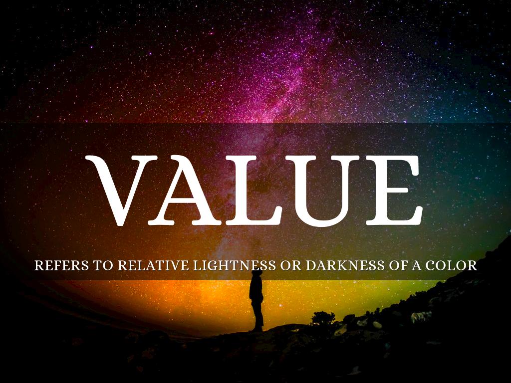 REFERS TO RELATIVE LIGHTNESS OR DARKNESS OF A COLOR